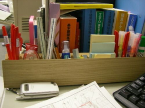 倉田裕之/建築・計画事務所さんのマルゲリータ ペンスタンド PS-01!買いましたっ!素敵に見えないかもしれないのは、本当に仕事で使うものを入れているのと、机が雑だからで〜す!
